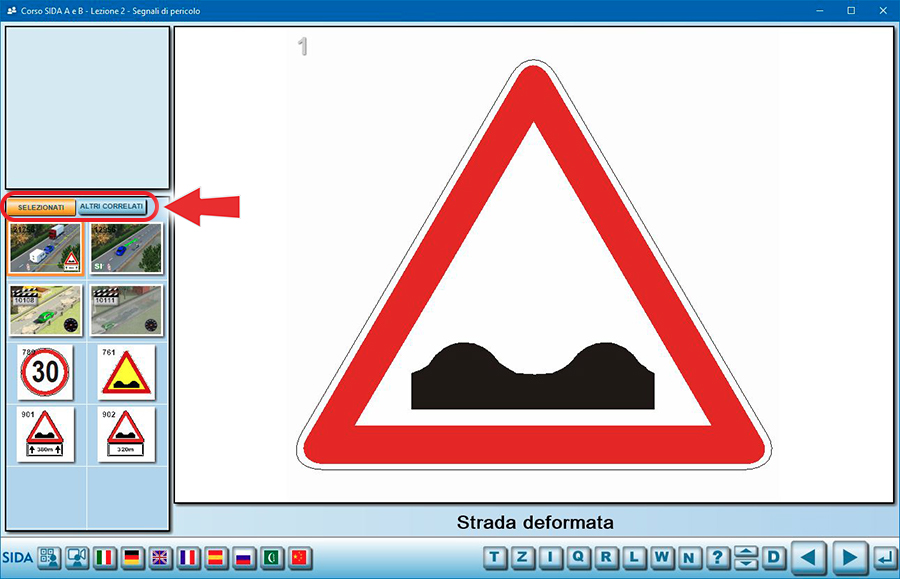 Se in abbinamento al segnale ci sono quiz o integrativi, nel tabellone di SIDA appare un pallino in corrispondenza delle lettere Q o I.